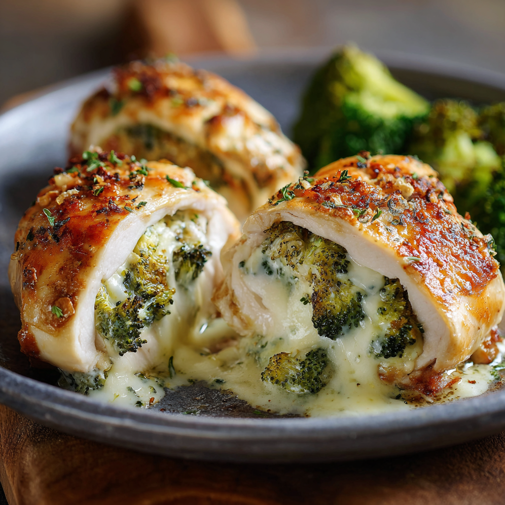The biggest challenge with chicken breast is its tendency to dry out at $74^{\circ}\text{C}$ (165°F). By stuffing the center with broccoli and cheese, you create an internal moisture reservoir.