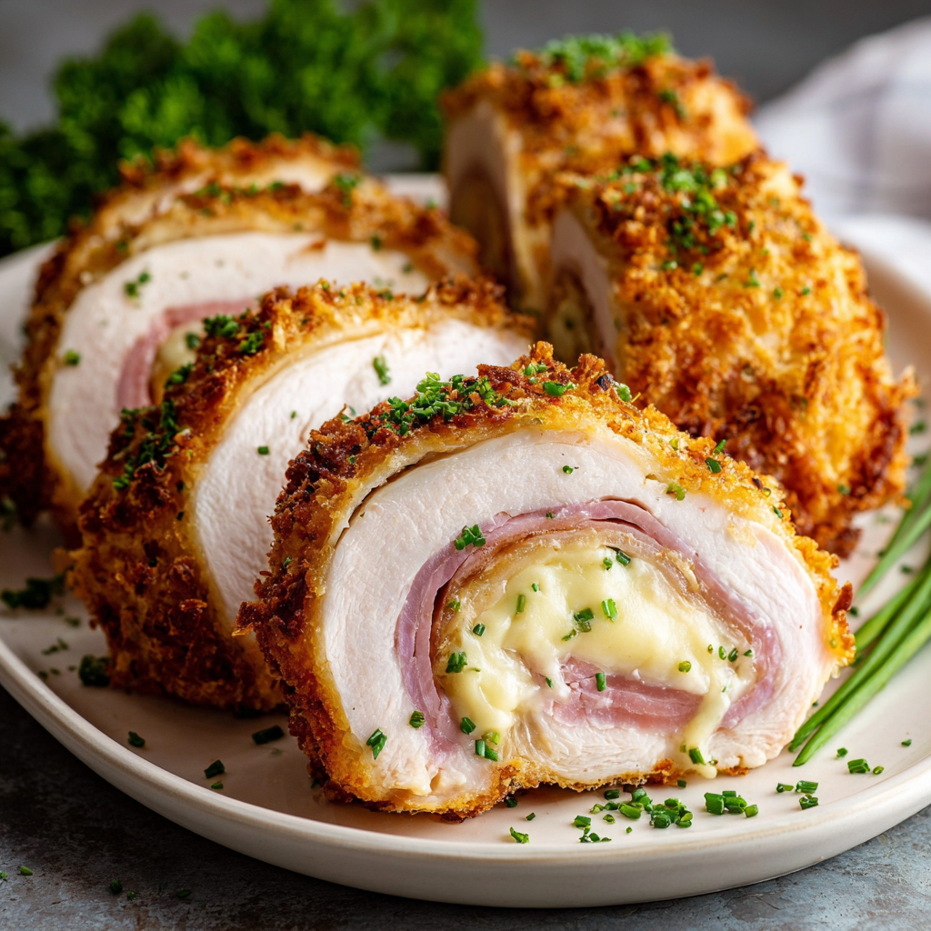 The Classic Crispy Chicken Cordon Bleu is a timeless dish that balances the saltiness of ham, the nuttiness of Swiss cheese, and the crunch of golden Panko. It is as much a feat of engineering as it is of cooking.
