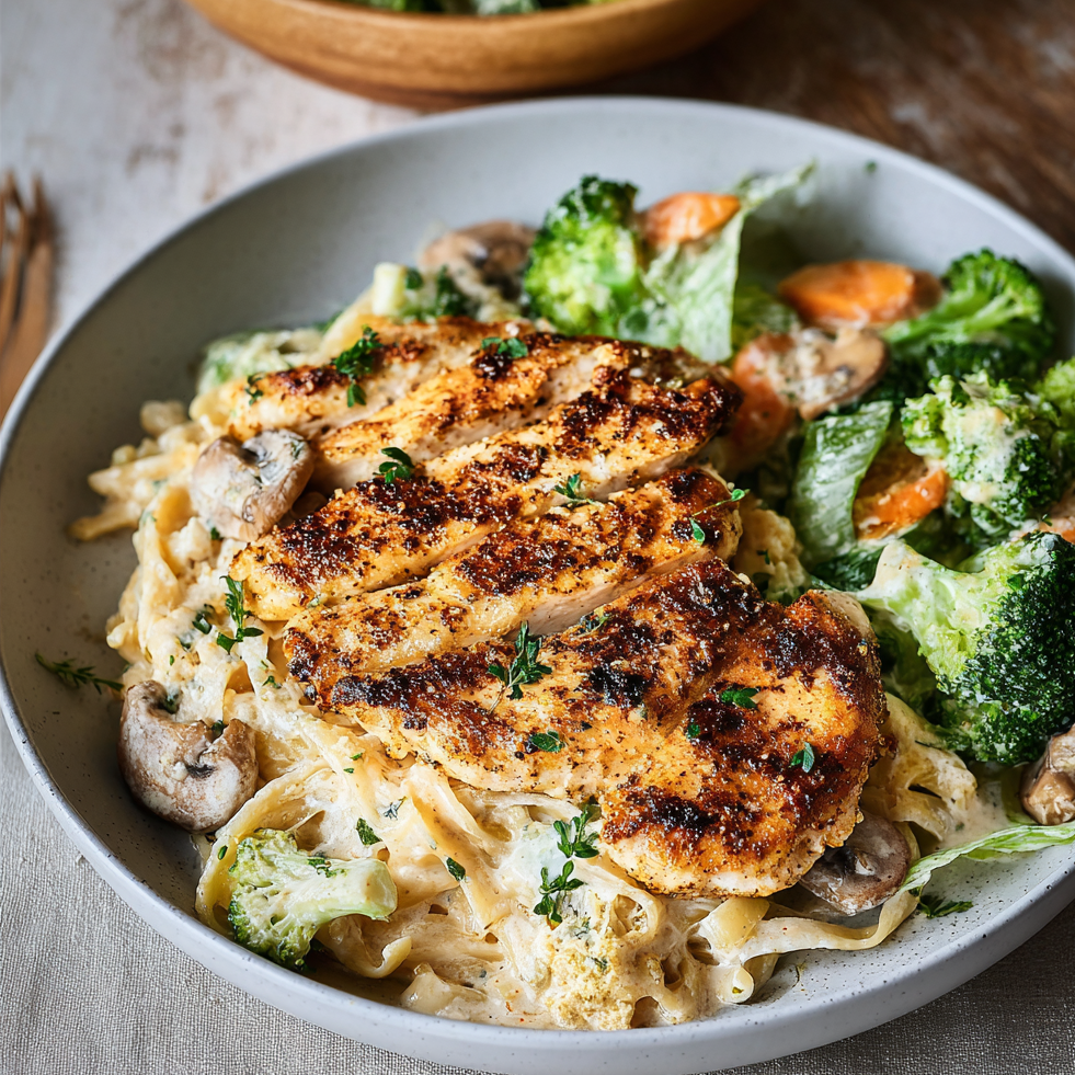 Our Light Chicken Alfredo utilizes a “Technical Swap.” Instead of relying on reduced heavy cream for thickness, we use a combination of low-sodium chicken broth, 2% milk, and a small amount of starch. This creates a “silky” rather than “heavy” mouthfeel. By incorporating lean chicken breast, we maintain a high protein-to-calorie ratio, making this a functional meal for muscle recovery without the post-dinner “food coma.”