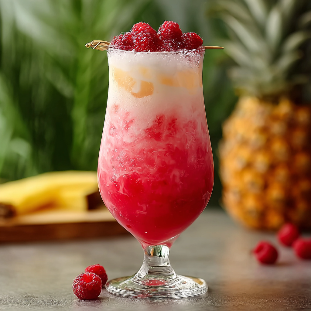 A traditional Piña Colada relies on the heavy, creamy mouthfeel of coconut fats and the tropical sweetness of pineapple. By introducing raspberries, we are utilizing anthocyanins (the pigments in the berries) and citric acid to cut through the heavy lipids of the coconut.