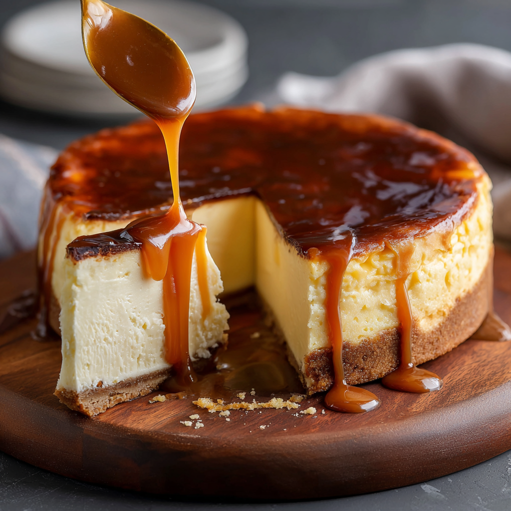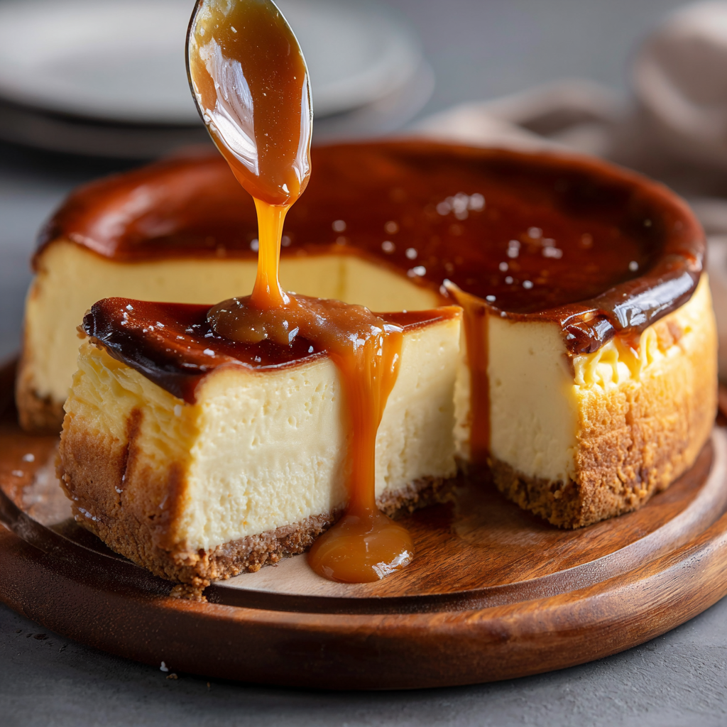 The Basque Cheesecake is the “anti-cheesecake”—no crust, no water bath, and no perfectionism required. It’s a rustic, charred masterpiece that pairs perfectly with the sharp, salty snap of the caramel.